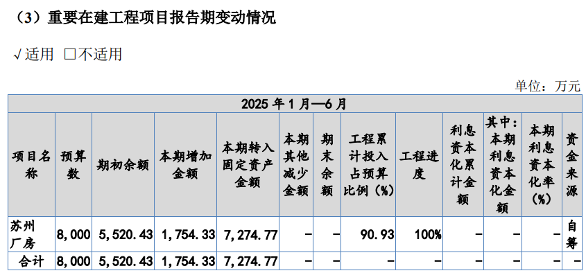 此外,“华东工业自动化运送开发分娩及研发神气”是良习乐本次IPO的主要募投神气之一,该项已于2024年开工。招股书露馅,放胆2025年上半年末的在建工程神气中,仅包含87.8万元的稀罕工程;但在此前的2024年,“苏州厂房”则有在建工程余额5520.43万元,并于本年上半年转入固定金钱7274.77万元、工程流程为100%。