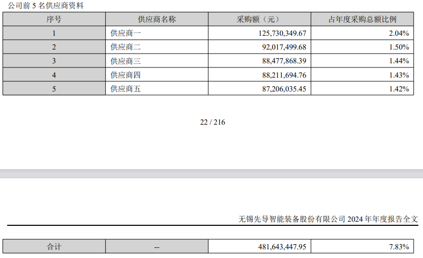 从这段描画计算,先导智能从良习乐采购的开发居品,并未用于私用(计入固定金钱),而是与其他部件集中拼装再对外售售,则在正常的购销逻辑下,良习乐对先导智能的销售,就应当对应着先导智能向良习乐的采购。然而凭证先导智能发布的2024年年报,虽未露馅前五大供应商的具体称号,但排行第一的最大供应商对应采购金额也仅为1.26亿元,与良习乐露馅的销售金额比拟,不及后者的一半。