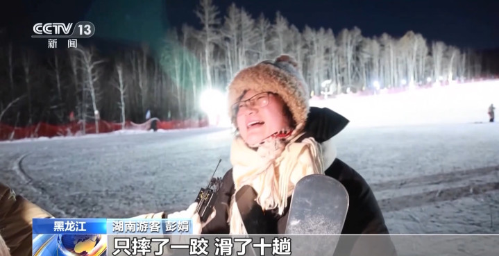 湖南旅客彭娟:过瘾!我一初始还不太会滑,来这边低级滑雪场滑得很兴盛,只摔了一跤,滑了十趟。