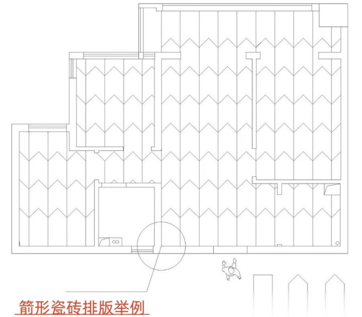 最初说优点:想象及装修界巨额以为,鱼骨纹木纹砖铺贴后的横纹,一定进度上影响了好意思不雅性,而加工成箭形瓷砖,则较圆善搞定了这一问题,如图: